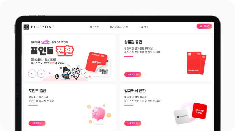 보유하고 있는 상품권을 충전하고, 출금까지! 모두 플러스존에서!